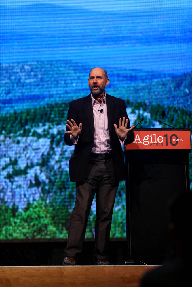 How many people have seen me talk here before at Agile Australia?. And you came back? Wow, I'm impressed. If you've seen me talk before at Agile Australia, or indeed at any conference, you know that pretty much every time I give a talk, I call it “Software Design in the 21st Century”, or something like that: because it's a vague title and I can talk about whatever I like. And I was going to do that again here, but I decided that I'm going to do something specific: to talk about where we are: the agile community in 2018. I decided I'd do not something that's a particularly deeply planned talk with lots of slides and clever diagrams and beautiful transitions - but just me yakking. Which I've done before, but it's been a while, so we'll see how we go.