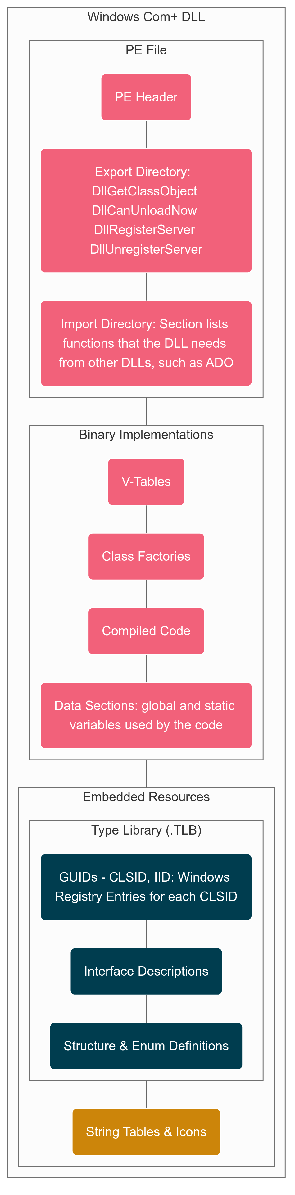 One of the available options was to carefully look at the constants and strings in the DLL. We used the historical context: late 1990s or early 2000 common architectural pattern followed in that period was to insert data into the DB: was to either “select for insert” or “insert/update handled by stored procedure” or via ADO (which is an ORM). Interestingly we found all the patterns in different parts of the system.