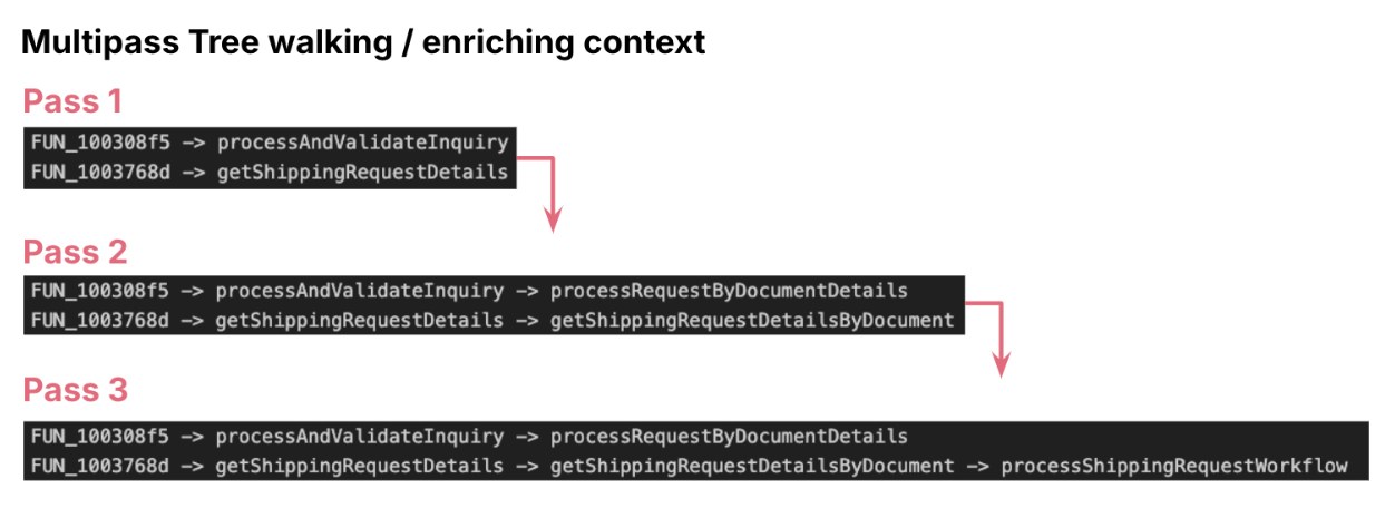 AI accelerated the assembly archaeology layer by layer, pass by pass: We applied multi pass enrichment. In each pass, we either navigated from leaf node to top of the tree or reverse, in each step we enriched the context of the function either using its parents context or its child context. This helped us to change the technical conversion of pseudocode into a functional specification. We followed simple techniques like asking LLM to give meaningful method names based on known context. After multiple passes we build out the entire functional context.