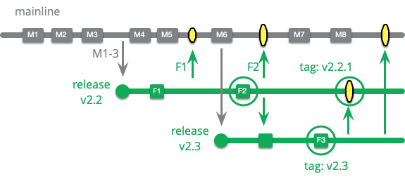 Lots of branching approaches have been described over the years. As I've tried to understand how they work and when they are best used, I've assessed them through the half-formed patterns in my mind. Now I've finally developed and written these patterns down, I think it's useful to look at some of these policies and see how I think about them in terms of the patterns.