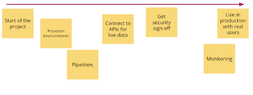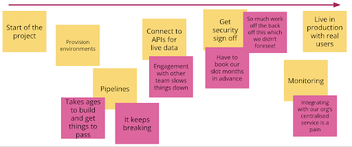 Then ask everyone to map all the things from the start of a project to it being live in production in sticky notes of one colour.