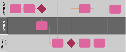 Especially when you release your mvp (see previous section). Apply this thinking to any other interactions or processes which teams might have to go through when using your product. By creating a great user experience (and also having an infra product people want of course), you should not only have happy users but also great publicity within your organisation so that other teams want to onboard. Please don’t ignore this advice and get in a position where your organisation is mandating the usage of your nightmare-to-consume infrastructure platform and all your developer teams are sad :(
