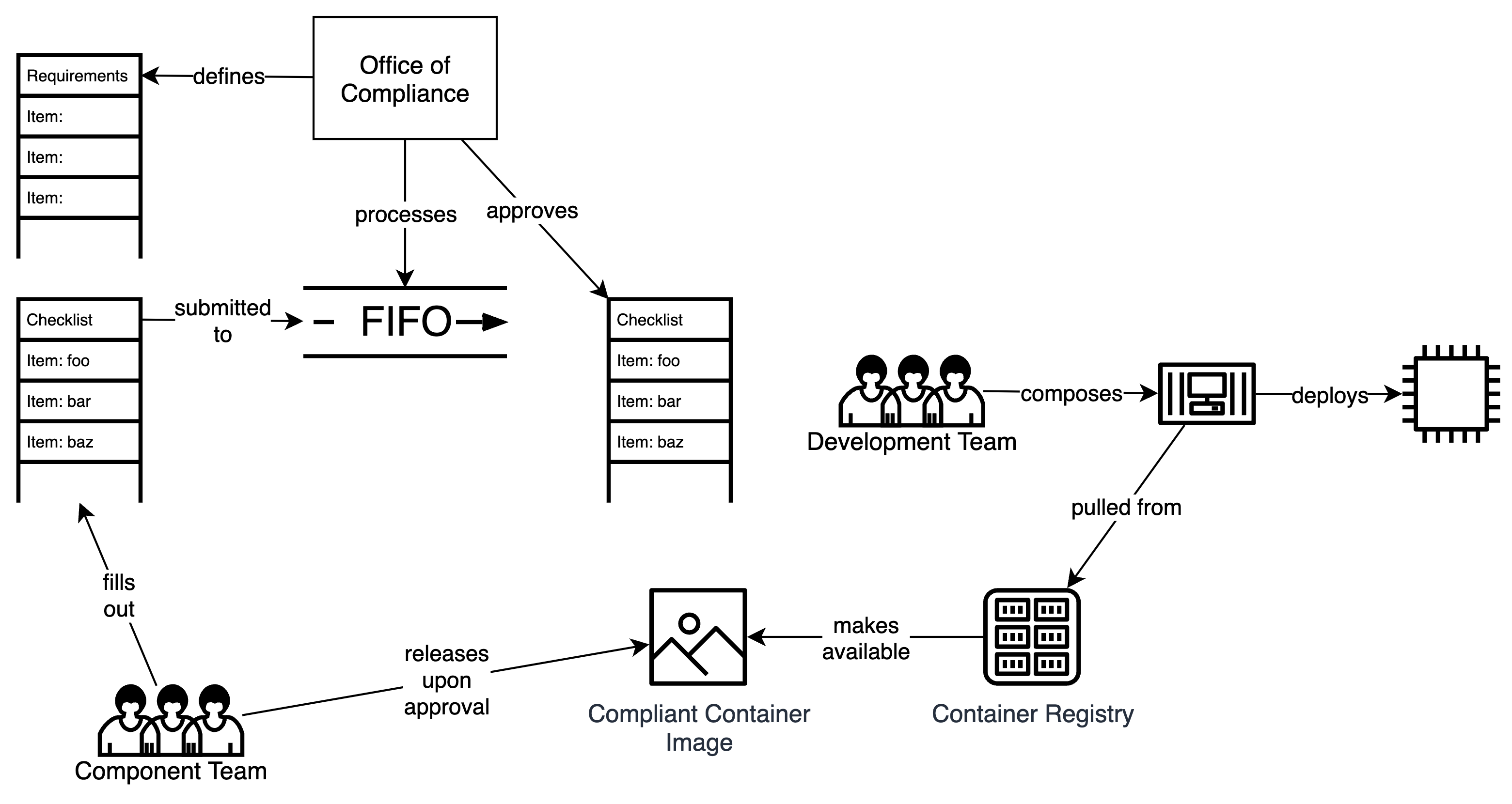 The friction associated with a component-composition strategy appears when these fundamental assumptions and restrictions are violated. Any product development which would require capabilities outside the scope of existing “golden images” would also require a development team to go through the same onerous Compliance process for these “non-golden” components of their system. Some teams may perceive considerable schedule risk in doing so, which may have undue influence on the architecture and design of the system.
