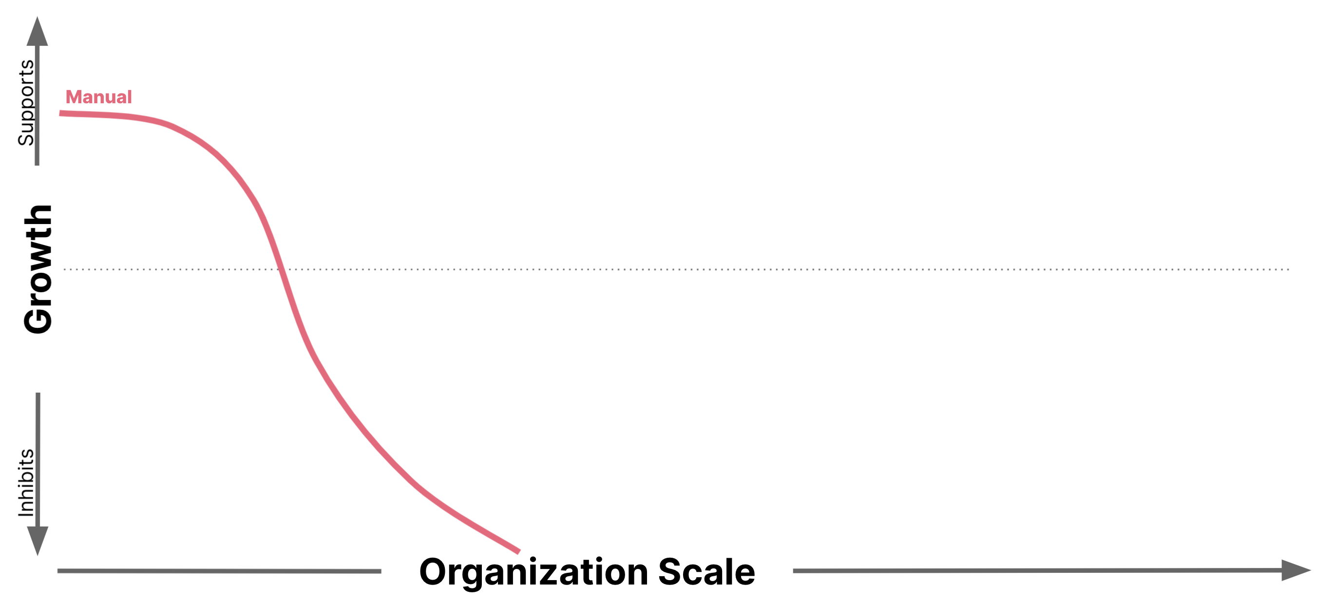 This process can become painful quite quickly as the organization scales. The additional scale creates challenges which manifest in multiple dimensions as a result of increased workload and complexity.
