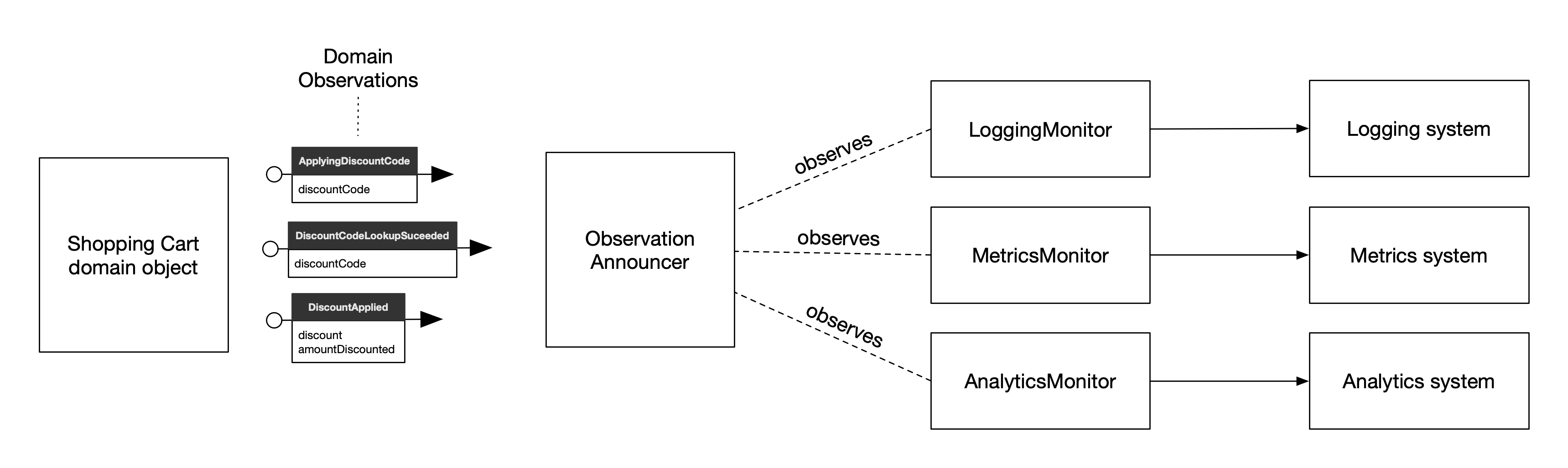 Observability in our software systems has always been valuable and has become even more so in this era of cloud and microservices. However, the observability we add to our systems tends to be rather low level and technical in nature, and too often it seems to require littering our codebase with crufty, verbose calls to various logging, instrumentation, and analytics frameworks. This article describes a pattern that cleans up this mess and allows us to add business-relevant observability in a clean, testable way.