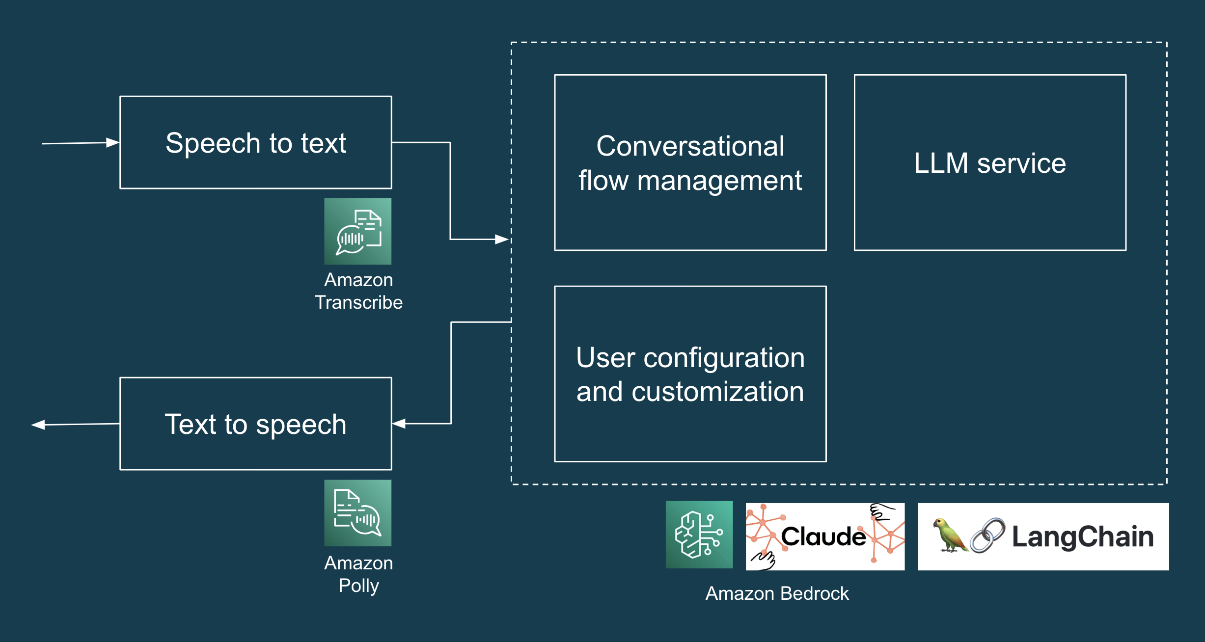 We recently completed a short seven-day engagement to help a client develop an AI Concierge proof of concept (POC). The AI Concierge provides an interactive, voice-based user experience to assist with common residential service requests. It leverages AWS services (Transcribe, Bedrock and Polly) to convert human speech into text, process this input through an LLM, and finally transform the generated text response back into speech.