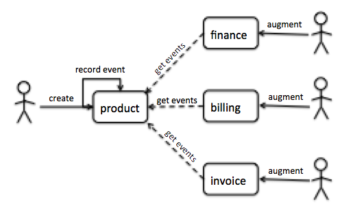 The way we do this technically is to shrink the set of master data that resides in the product catalog, and replicate that data to other systems, where it is augmented. This technique is sometimes associated with “swivel chair integration,” but it's not the same. In true swivel chair integration, the same information is entered in multiple applications that do not directly integrate. With bounded contexts, master data is replicated, and is contextually augmented and transformed in dependent applications.