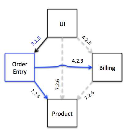 Earlier, I recommended considering service endpoints as story boundaries, with the caveat that we may lose the benefit of traditional agile stories - namely, that they are aligned with business functionality. Since teams work with different priorities and at different speeds, this problem is exacerbated in large scale SOA, with the risk that we lose the forest for the trees. Imagine a business feature to bill for the first month of a product. A true business flow may require a series of service calls prior to that point, involving customer creation, product lookup, order creation, and field technician approval. At scale, those service endpoints will be implemented by different teams.