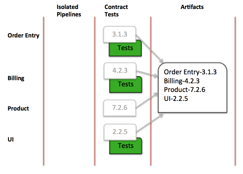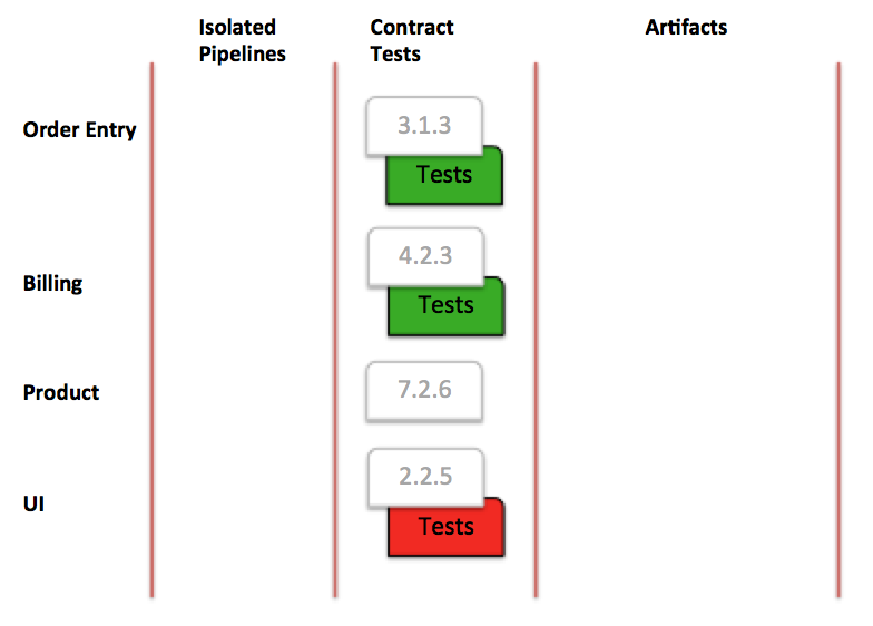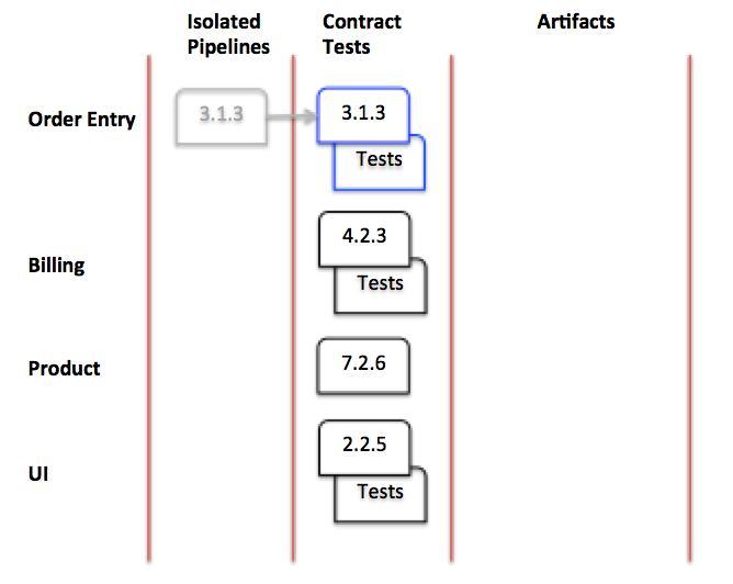 In our example, let's say a new build of the order entry service progresses to the contract test stage: