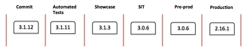 At this point, all versions of the services involved are captured in a single deployable artifact set, or DAS. This DAS can become the single deployable artifact for higher stages of the deployment pipeline. Alternatively, it can provide a compatibility reference if supporting independent releases is required. Either way, it represents a set of components that have been proven to speak the same language.