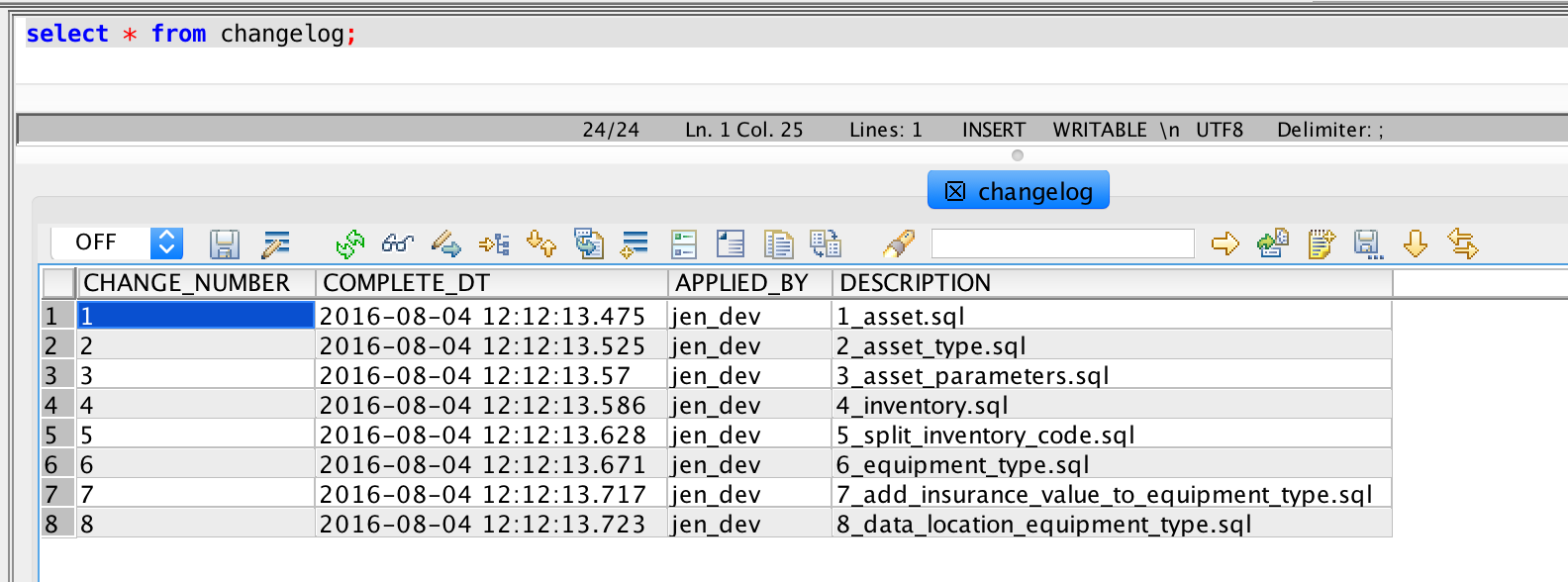 Migrating schema "JEN_DEV" to version 4 - inventory