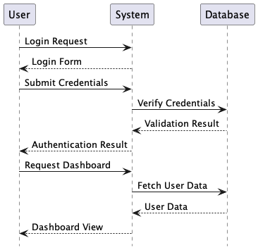 Our goal for this project is to create a tool which can divide the sequence diagram into steps and generate a step by step view of the diagram. So for the above diagram, we should be able to view login, authentication and dashboard steps one by one.