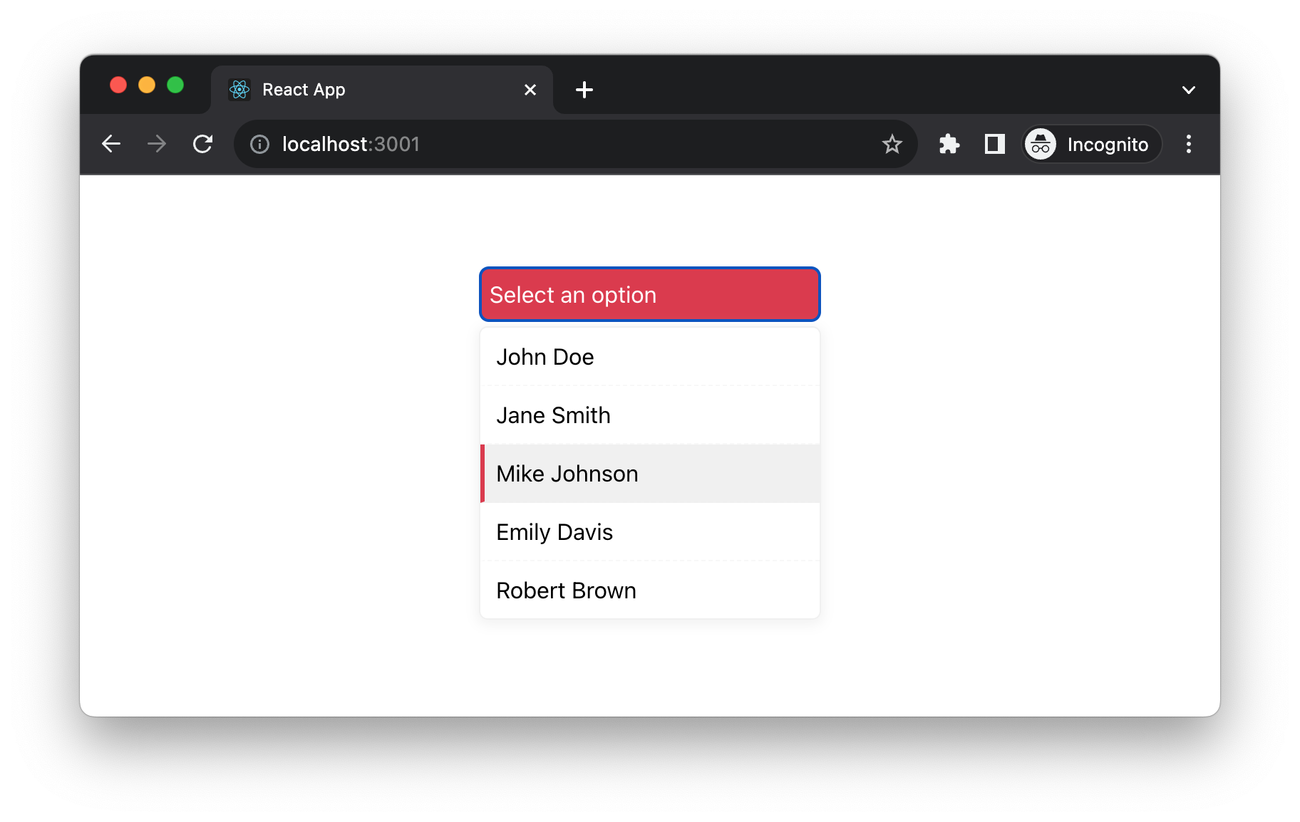 We'll begin with a simple, desktop version that only supports mouse clicks, and gradually build in more features to make it realistic. Note that the goal here is to reveal a few software design patterns rather than teach how to build a dropdown list for production use - actually, I don’t recommend doing this from scratch and would instead suggest using more mature libraries.
