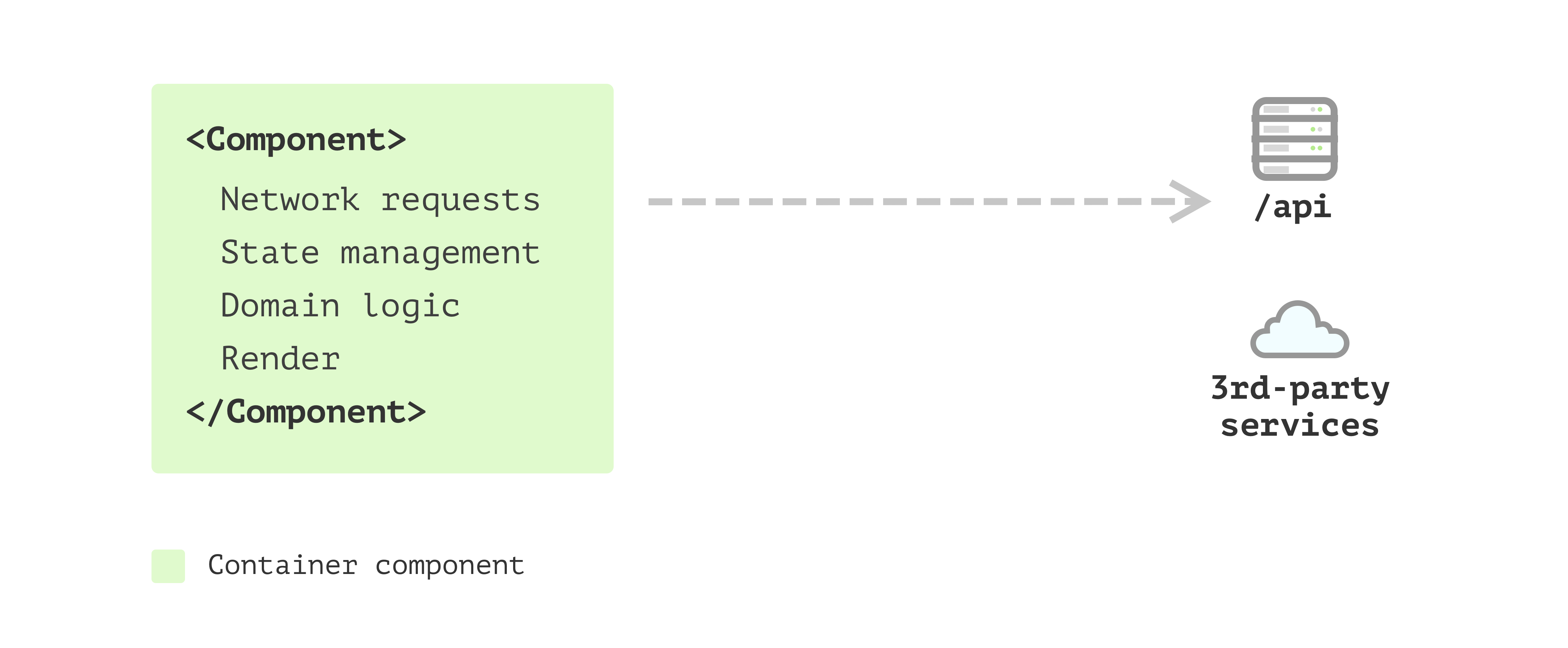 And as your application grows, apart from the view, there are things like sending network requests, converting data into different shapes for the view to consume, and collecting data to send back to the server. And having this code inside components doesn’t feel right as they’re not really about user interfaces. Also, some components have too many internal states.