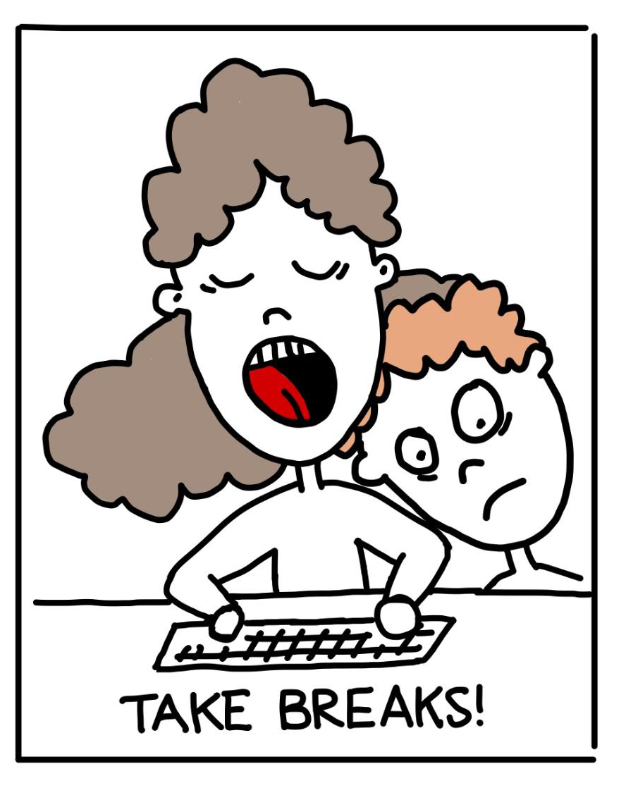 - Use the short breaks to really take a break and tank energy, get some water or coffee, use the bathroom, get some fresh air. Avoid using these short breaks for other work, like writing emails.