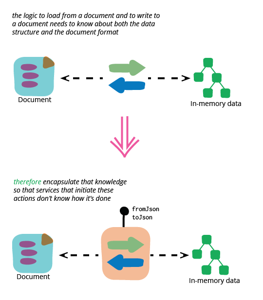 If I had other service methods that were using assortments like this, I'd now adjust all their calls to use these new methods. Once I'm done I have objects that encapsulate their mechanism for serialization, which makes it much easier for me to change it.