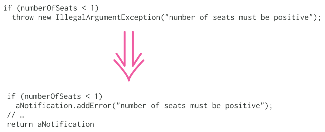 This article is about replacing exceptions for notification in the context of validating raw input. You may also find this technique useful in other situations where a notification is a better choice than throwing an exception, but I'm focusing on the validation case here, as it is a common one.