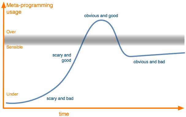 - Scary and Good: people begin to see the value of meta-programming but are still uncomfortable with using it.