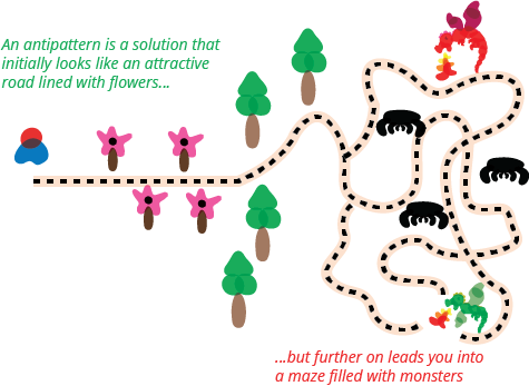 An antipattern is just like a pattern, except that instead of a solution it gives something that looks superficially like a solution but isn't one.