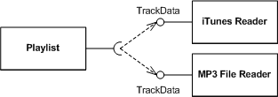 Classes don't just implement interfaces, you can also think of them requiring interfaces. Let's imagine I write a class that can provide various information about my digital music playlists, such as the total length of the playlist. In order to get information about individual music files I need to get the data from somewhere. Since I'm a reasonably hip dude I can get it from iTunes - but since I'm aware that there are other possibilities (such as reading directly from an mp3) I use an interface so that I can easily substitute another implementation.