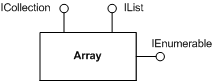 One of the new notations that appeared in UML 2 was the socket notation to show interfaces required by a class. The origins of this was the 'lollipop' notation that was popularized by Microsoft to show a class implementing multiple interfaces. So I can show that the Array class implements multiple interfaces like this.