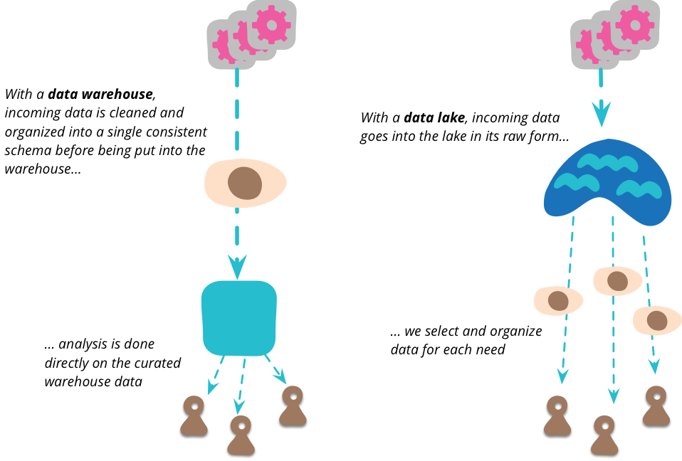 Data warehouses usually would not just cleanse but also aggregate the data into a form that made it easier to analyze. But scientists tend to object to this too, because aggregation implies throwing away data. The data lake should contain all the data because you don't know what people will find valuable, either today or in a couple of years time.