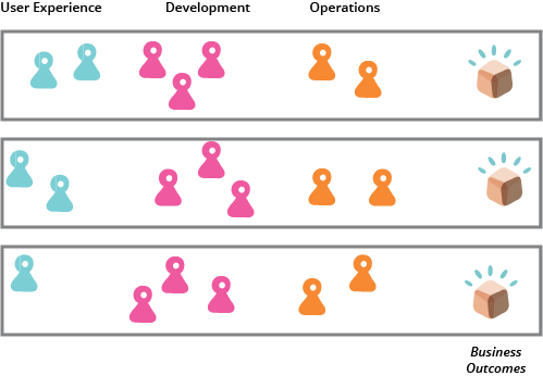 People who sponsor development of software usually aren’t very interested in development metrics such as velocity or frequency of deployment to production. They care more about business benefits that the software will deliver such as lower manual effort, better sales conversion, greater customer satisfaction, i.e business outcomes. Outcome-oriented teams are those that are mandated and equipped to deliver business outcomes, such teams have people with the capability to carry out all necessary activities to realize the outcome.. By contrast, ActivityOriented teams are neither equipped nor mandated to do so. They can only perform one of several activities required to realize an outcome.
