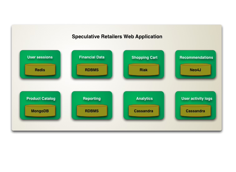 2: Don't take the example in the diagram too seriously. I'm not making any recommendations about which database technology to use for what kind of service. But I do think that people should consider these kinds of technologies as part of application architecture.