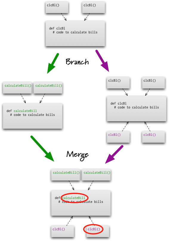 There seem to be two groups of people who promote the notion of tools make feature branching tolerable. One is purveyors of “enterprise grade” VCSs. We don't really care about them. The other group is fans of DVCSs (Distributed Version Control Systems). I get a bit more concerned about the latter group. Often people try to justify DVCSs based on how they make feature branching easy. But that misses the issues of semantic conflicts 2. There are lots of good reasons to use a DVCS, so there's no reason to couple a good tool to a problematic technique.