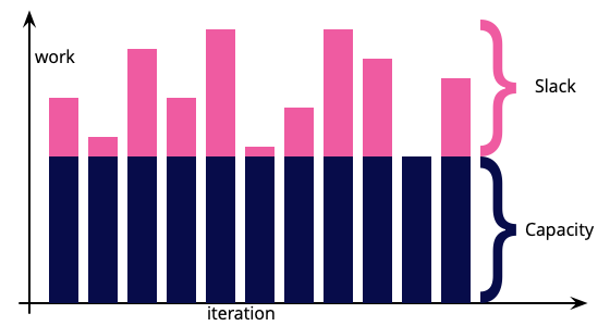 A common approach with Timeboxed Iterations is to allocate as many UserStories as possible to each iteration in order to maximize the utilization of the staff involved. Slack is the policy of deliberately leaving time that isn't allocated for stories, using that time for unplanned work. Although this seems inefficient, it usually yields a significant improvement for the productivity of a team.