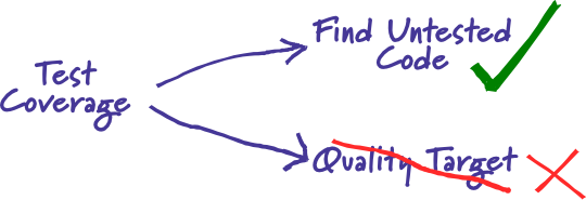 From time to time I hear people asking what value of test coverage (also called code coverage) they should aim for, or stating their coverage levels with pride. Such statements miss the point. Test coverage is a useful tool for finding untested parts of a codebase. Test coverage is of little use as a numeric statement of how good your tests are.