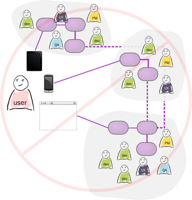 As usual, what counts here is the user experience, it's about how software helps the user achieve their desires better.The user just wants that “I Rule” moment. The fact that the company commissioning the software wants to send out the web site and mobile app to different software houses is less relevant than 1923's baseball scores. So the user goes elsewhere and the app provider is a victim of the shattered future.