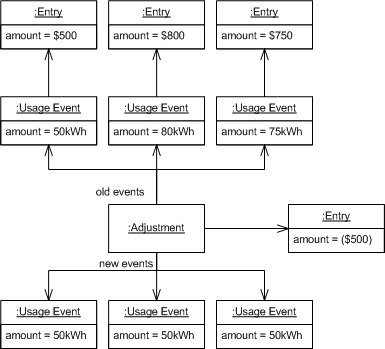 Even so the choice between Reversal Adjustment and Difference Adjustment is not simple, and usually depends on how the domain experts want to think about how the adjustments are carried out. If they want to see explicit cancelling, use Reversal Adjustment, if they prefer a summary use Difference Adjustment. Fortunately refactoring from Reversal Adjustment to Difference Adjustment is not too difficult. The reverse refactoring is also possible, although reconstructing the reversal data is somewhere between involved and impossible.