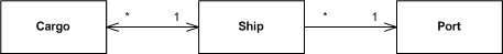 The domain model is a simple one of ships that carry cargo and move between ports.
