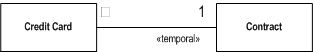 One way is to treat each contract as effectively a separate contract tied to the credit card. In many ways this doesn't involve Temporal Object at all. Instead you are thinking of explicitly having a credit card with a Temporal Propertyof the contract.