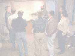 A common thing you find in agile projects is that the development team sits in a single open team room. It was advocated early on in Extreme Programming and called out as one of primary practices in the second edition. Agilists favor a open team room as it promotes lots of informal and deep communication between people on the team.