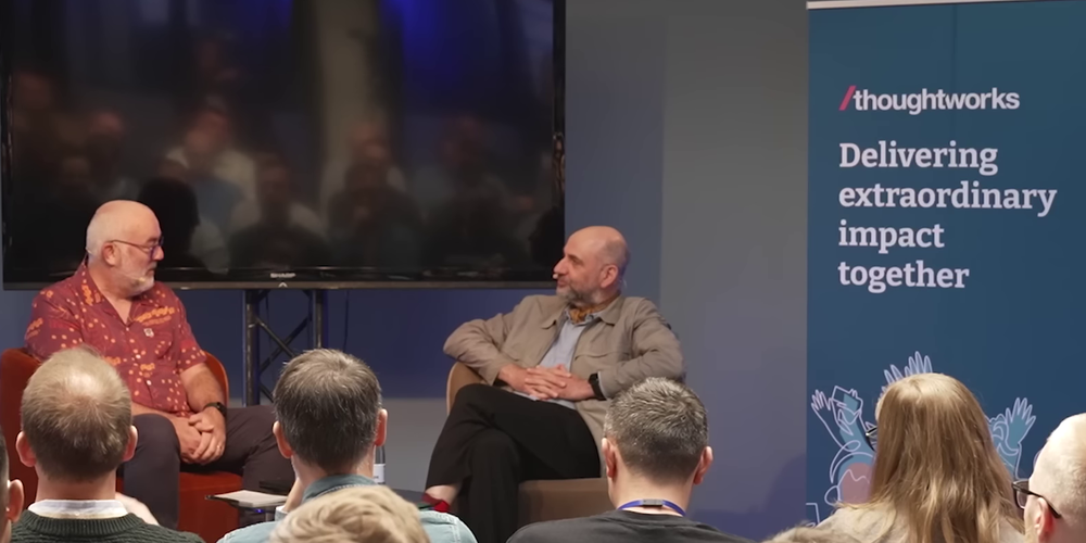 At goto copenhagen last year, my friend James Lewis interviewed me. I talk about when I learned about iterative design from Kent Beck, the dangers of product owners interfering with business-developer communication, and writing the agile manifesto. During this he specifically asked about my essay Is Design Dead. There's also a some audience questions asking if pair programming is a bad thing for introverts like us (no), and (inevitably) the role of LLMs for programmers today.